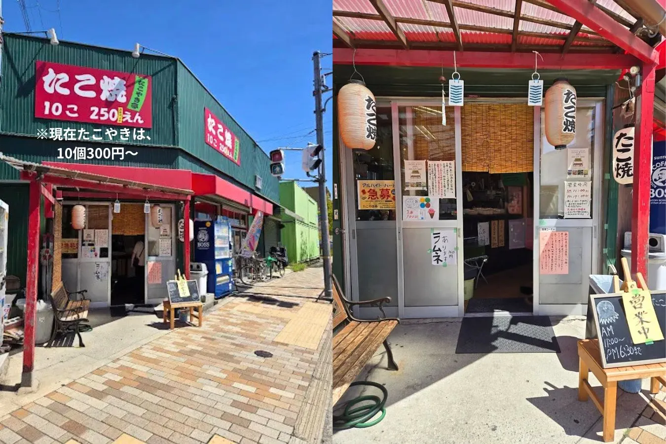創業当初は1舟200円で販売していたたこ焼きも、いまは10個300円に。